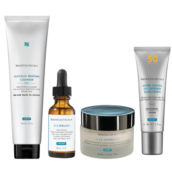 SkinCeuticals Anti-Ageing Kit is a premium homecare regimen designed to combat visible signs of ageing while protecting and restoring skin health. This advanced kit helps to smooth fine lines and wrinkles, improve skin firmness, and protect against environmental damage, leaving the skin looking youthful, radiant, and resilient. Ideal for those concerned with premature ageing, loss of elasticity, or dullness.